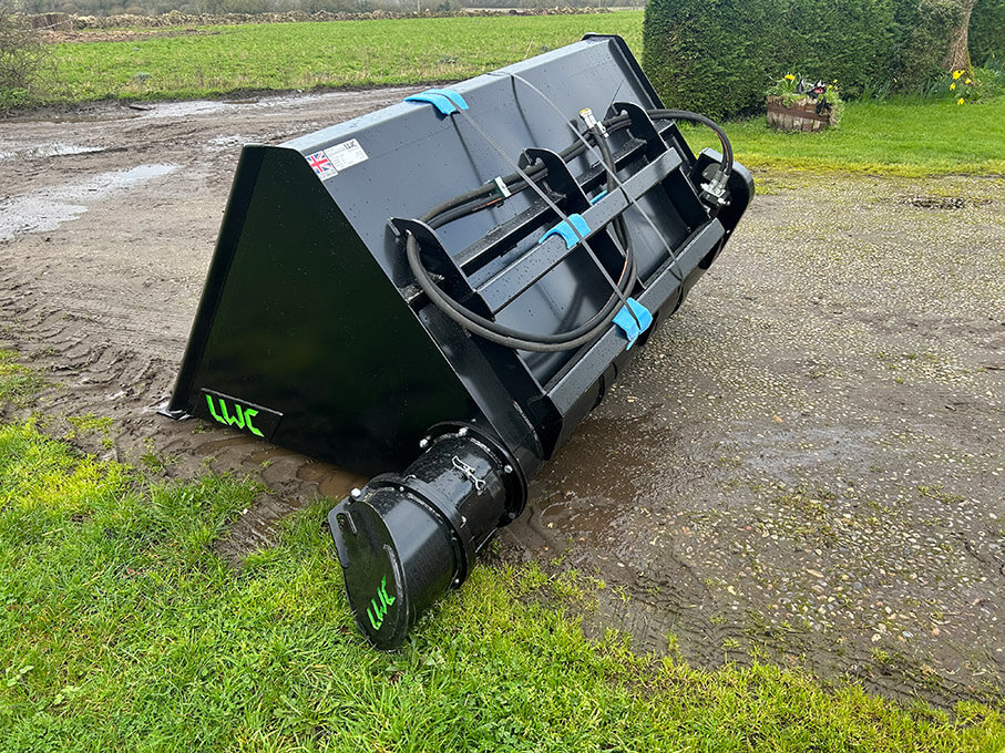 8ft x 6ft, 500kg capacity, adjustable roating creep bar and vertical rails, lid opening width 2.34m, 3 point linkage, loader carrying frame, bird protection kit.