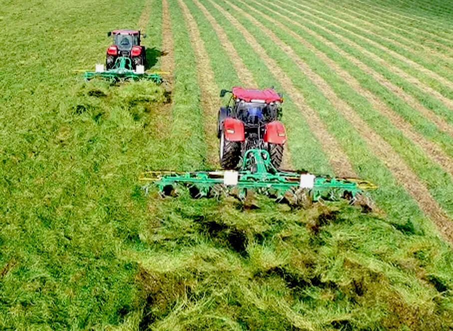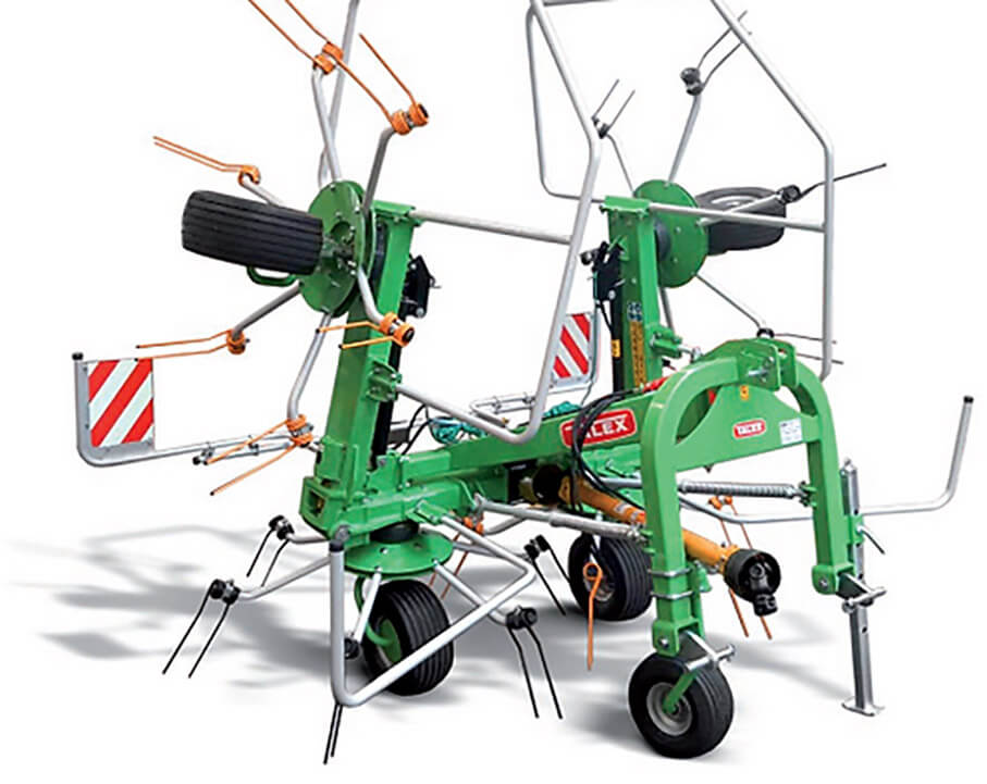 Malone Tedd-Air rotary Tedder comes with double hock tine which enable more capacity while insuring the crop is free from soil contamination, forward angled rotors for gentle collection, easily adjustable height function and a unique closed circuit hydraulic stabiisation system allowing steering, reduces wear, movement and pressure on both Tedder and Tractor.
